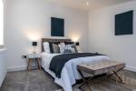 The architectural staircase leads to a gallery-style landing overlooking the reception areas and kitchen below. The bedroom suites represent the ultimate retreat, featuring far-reaching views across the Derbyshire countryside. A luxurious family bathroom completes this level, featuring an oversized walk-in shower, hand basin vanity unit, and separate WC.