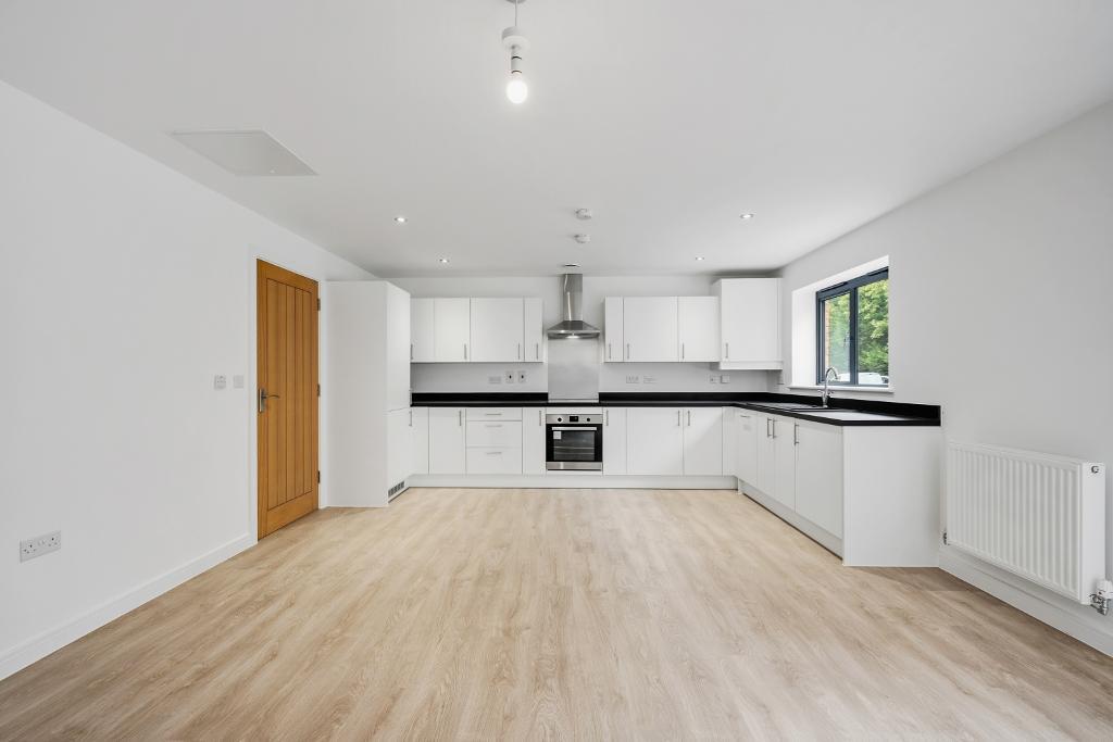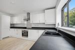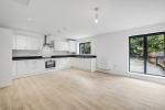 A bright and generous open-plan living space with ample room for both lounge and dining furniture. The fully fitted kitchen includes a stylish range of wall, base and drawer units with integrated appliances: