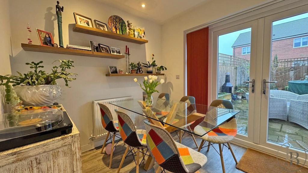 To the rear of the property is a contemporary kitchen-dining area, fitted with a range of modern appliances along with ample worktop and storage space. The dining area benefits from patio doors opening directly onto the rear garden, creating a seamless flow between indoor and outdoor living.